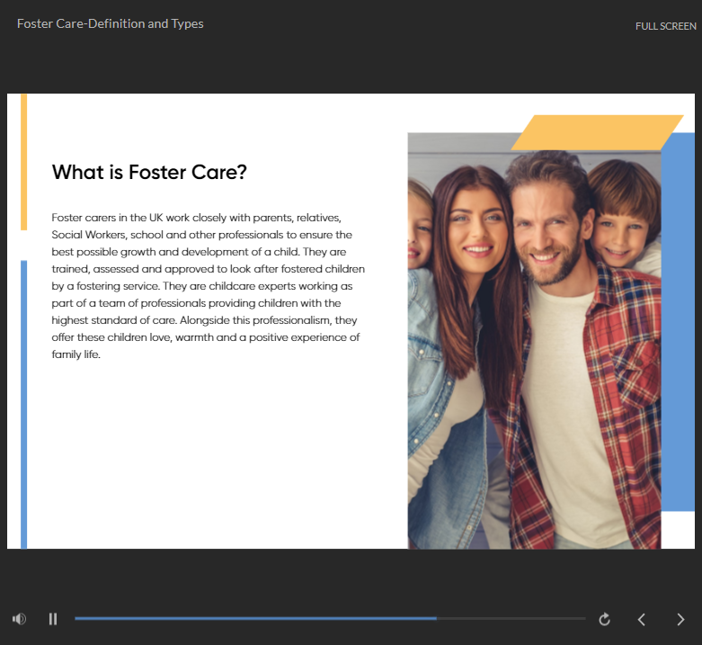 After studying the Foster Care Training Course course, your skills and knowledge will be tested with a MCQ exam or assignment. You must get a score of 60% to pass the test and get your certificate.