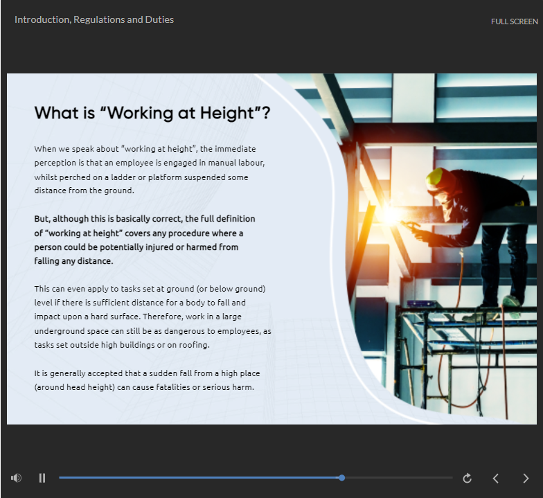 Any internet-connected device, such as a computer, tablet, or smartphone, can access this online Working at Height Level 2 course.